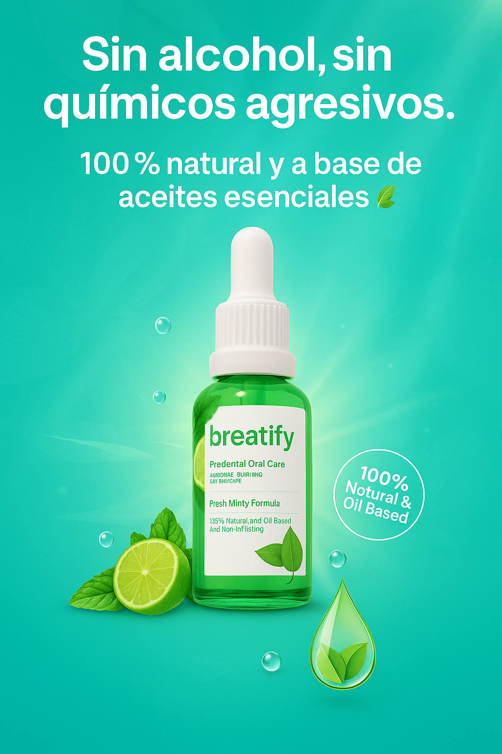 BREATIFY está formulado con aceites esenciales de menta, limón y coco, cuidadosamente seleccionados para ofrecerte una limpieza profunda y fresca sin agredir tu boca.